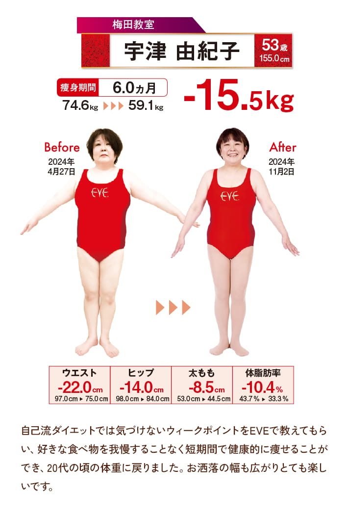 - ⑪宇津 由紀子 様(53歳)-15.5kg