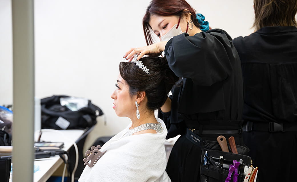 EVE STAGE当日を迎えた200名の出場者たち。プロによるメイクやウォーキング指導に非日常を感じ、顔には緊張の色も。そして間もなく始まるステージ本番。胸の高鳴りも最高潮に達し、開幕前から会場全体が熱気に包まれていました。