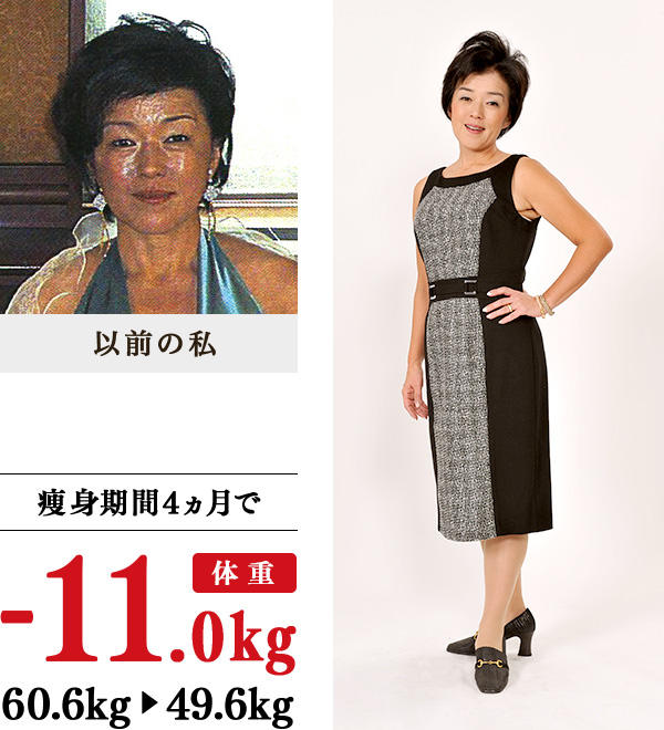 9年間連れ添った主人と入籍し、お披露目パーティーに着るためのドレスを試着してビックリ!9年間で10kg以上太った私の体は、予想を上回る醜さだったのです。気づいたら、パソコンで目に飛び込んできたイヴを訪ねていました。教室での説明はわかりやすく、毎回、体の変化を確認しながら施術を行ってくれるので、楽しく通えました。11kgの減量に成功したら、洋服は、13号から7号に3サイズもダウン。体が軽く、積極的に動けるようになり、趣味のゴルフでも、足取りは軽く!食べながらの減量だったおかげで、体力は以前よりも増したようで、夏バテもせず、ゴルフを楽しんでいます。英会話や社交ダンスにも積極的にトライしたいです。