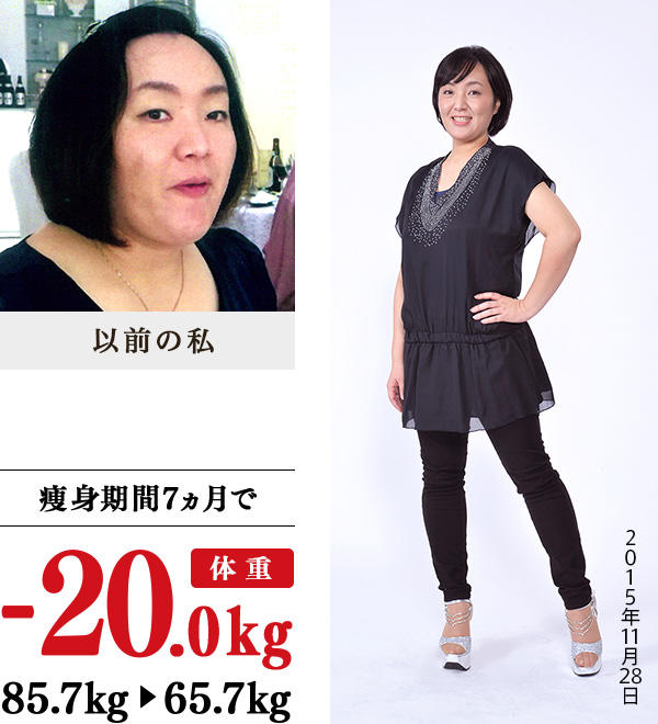 20代前半までは痩せていたのに、仕事中や夜食にお菓子をたべていたら、34歳のときに人も驚く85kgに…。初回の体験とカウンセリングで、「ここなら通える!」と思い、その日のうちにイヴへ入学しました。温かいトリートメント室は最初は辛く感じましたが、慣れれば効率よく汗をかけることが体感できました。毎回体調にあわせて痩身技術を組みあわせてボディケアしていただけるというプログラムも気に入りました。5kg痩せた頃から生理のときの腰痛や肩こりがよくなるなどの体調の変化がみるみる現われ、15kg痩せたときには普通に歩くだけでも辛かった私が、山登りとボルダリングができるようになりました。一緒に入学した61歳の母も7ヵ月で19.5kg痩せました。