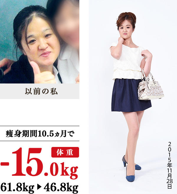 夜勤が終わったあとに好きなだけ食べて寝るという生活をしていたら、白衣がキツクなり、年々サイズアップ…。水分のみをとる食事抜き自己流ダイエットで痩せても、すぐにリバウンドしました。背中のタルタルの肉も気になったので、イヴへ通学。オープンスペースの空間なので他の人が何をしているかも見れて一体感を感じながらの施術が気に入りました。よく汗をかき、いつもスッキリ通学が楽しくなりました。先生たちからは食べることの大切さを教わり、大好きだった小麦粉食品を控え、黒色の食材やクコの実、温かい飲み物を積極的にとるように大改善。5kg痩せた頃から白衣のウエストに余裕ができ、10kg減後は新しい出会いや恋愛に積極的になれそうです。