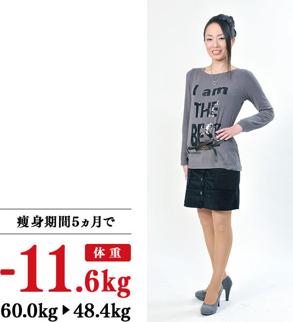 カナダで看護師になる夢を叶えるために、カナダに留学後、禁煙、座りっぱなしの生活、ストレスからの過食で体重が急増。日本に帰国したときにイヴに出会いました。確実に体重と体脂肪が減る施術と、アドバイスを受けながら、食事は好きな炭水化物を夜は控え、野菜鍋や豆乳をとるように改善し、目標の48kg台までの減量に成功。二重あごもなくなり、若く見られるようになりました。今年、看護師になるために、もう一度、カナダへ行きます。体が軽くなったのでスカッシュや、以前やっていたロッククライミングにもチャレンジしたいです。