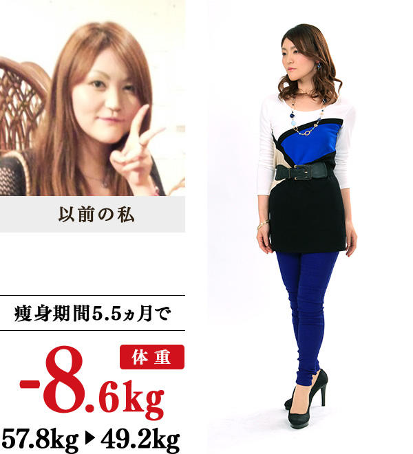 幼い頃から痩せていたことがなく、自己流痩身をしても、長続きせず…。彼に、「細い姿を見てみたい」とか、冗談混じりに、「俺のブタ」といわれ、私が痩せられるとは思ってもいないことに悔しくなり、イヴを訪ねました。イヴの教室は暑く、なかには痛みを感じる痩身技術もありましたが、終わると体も気分もスッキリ!先生たちが汗をかきながら、二人三脚でトリートメントをしてくださる姿にここなら続けられそうだと感じました。私の話や悩みをしっかり聞いて、心のケアやアドバイスをいただけることでも、やる気が出ました。5kg痩せた頃から脚のすき間が見え始め、今では友だちに、「体のラインが羨ましい」といわれる体型に。彼にも、「キレイになった」といってもらえました♥。