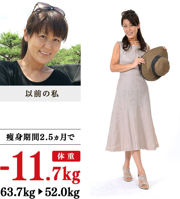 出産後に体重が増加し、健康診断ではメタボ判定、主人からは心ない言葉をいわれたこともあります。子どもたちのためにも、痩せて可愛いママになりたいと思い、イヴを訪ねました。出産時に母親から、「体が冷えているから難産になる」といわれていたのですが、1人目の出産時間は、なんと36時間。そんな私でしたが、イヴの技術を受けてみると痩せられるかもと思いました。通学5回頃からどんどん汗が出るようになり、1ヵ月後には腰痛や生理痛を感じなくなっていました。その後、肩こりやリンパの詰まりによる腫れも解消。食事面では、なるべく添加物のないシンプルで新鮮な食材を選び、温かい飲み物を飲むようになりました。イヴの痩身法は、健康的な発汗を促してくれるすごいシステム。この2ヵ月半で体を温めることの大切さを学びました。