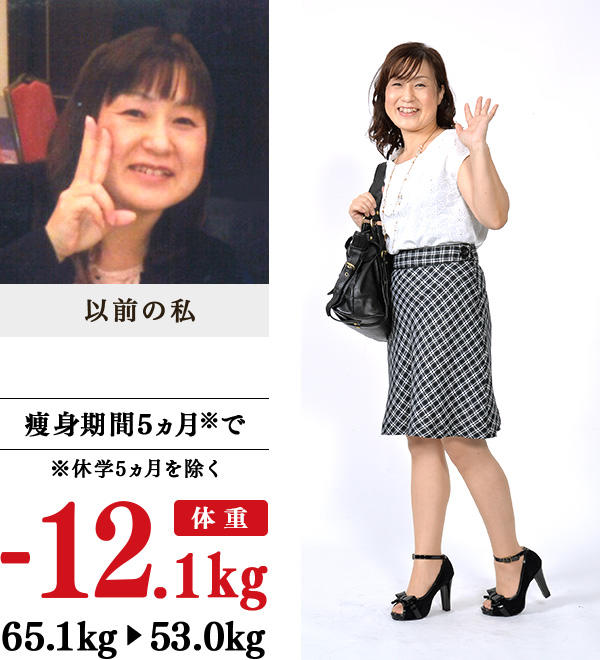 1年くらい前からプチ更年期なのか太り始めました。知人に「なんでそんなに太ったの?」と聞かれたことも…。洋服がどんどん入らなくなってしまったので、イヴで人生初痩身をすることに決めました。35歳頃から、手足の冷えを感じていましたが、最初の温式健康やせの体験で体が温かくなるのを実感。5kg痩せた頃から発汗量が増え、むくみを感じなくなり、基本の痩身技術だけでも体重が落ちるようになりました。家では、玄米や魚を積極的にとるようになり、体を温めるために半身浴とイヴオリジナルのブラッシング体操を実行。10kg減間際に停滞期がありましたが、教室に通うことで乗り越えられました。教室型エステのイヴに、ずっと通い続けたいと思っています。