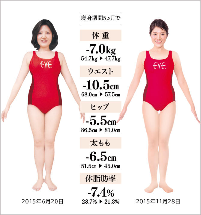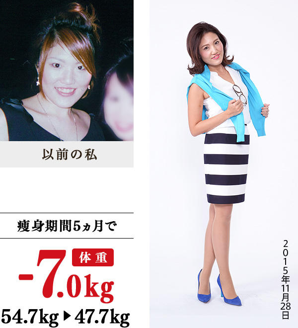 人生最大体重は中学3年生の60kg。運動と食事制限で13kg減に成功し、以降、リバウンドとダイエットを繰り返していたら、30歳過ぎから何をやっても痩せない体になり、お腹に肉割れ、腕や背中、お尻にたるみ、太ももに凸凹が…。「脚がキモイ」の彼のひと言で、イヴを訪ねました。温かく、ずーっと汗が出るイヴの環境は、常に脚が冷えていた私にはあっていると実感!塩を使った手技も、すごく効果的でした。食生活では、パスタ、ラーメンを食べなくなり、野菜のしょうがスープ、サラダ、豆腐、納豆、ヨーグルトや肉が増え、一変。絶対に無理だと思っていた夢の40kg台を達成!私の変身ぶりを見ていた会社の仲間2〜3人が体験に行きました。