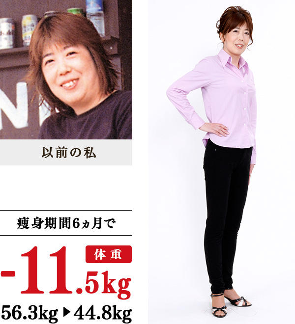 出産後から太り始め、数年前から自己流痩身をしたり、複数のエステやマッサージ、ジムに通ったけれども変化がなく、挫折…。そんなときイヴを知り、「これで最後の痩身」と決め、入学しました。施術を受けると、「体の内側から痩せる」を実感!毎回必ず体重が減り、目に見えてサイズダウンし、肉に埋もれていた鎖骨や腰骨も現れました。11kg痩せたら、生理痛や吹き出物が解消。患者さんには、「痩せてキレイになった」といわれ、イヴで学んだ食べ方、半身浴などは患者指導にも活かしています。ジーンズは25インチがブカブカに。体のラインが強調されるチビTなども楽しんでいます。