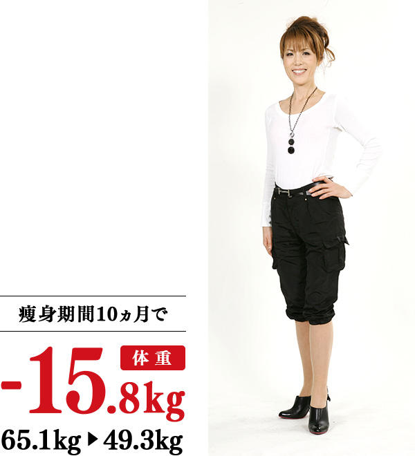 41歳で第3子を出産後、いろいろ自己流痩身を試したけれどもまったくやせず、2010年1月には出産翌日の体重に…。4月の子どもの入園式までにはやせようと入学したイヴで、入園式当日までに8kgやせ、昔のワンピースが着られました。さらに、10kg減達成した頃から、周囲の人に「どうやってやせたの?」「すごくきれいになった」などと声をかけられるようになりました。そして今は、小学生以来の夢の40kg台に!イヴに通って冷え性が解消したら、赤ら顔がなくなり、なぜか以前に比べ白髪も減ったせいか、「若返った」とも言われています。