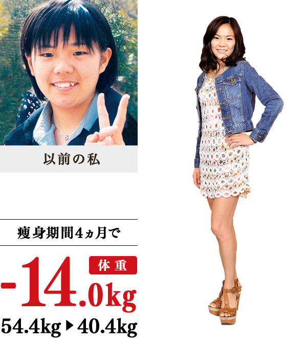 痩せたら血液検査の数値がよくなり、全て標準値になりました。にきびもできなくなり、肌もキレイに。洋服はラインの出るものや、ミニスカート、ショートパンツもOKで、5号サイズが着られます。太っていたことでのストレスがなくなり、自分のことが大好きになりました。イヴでの体験を通して、なんでもやればできるんだと思えるようになり、上をめざすことが楽しいので、常にチャレンジする自分でいたいと思っています。今は、中国語検定を受けるための勉強をしています。