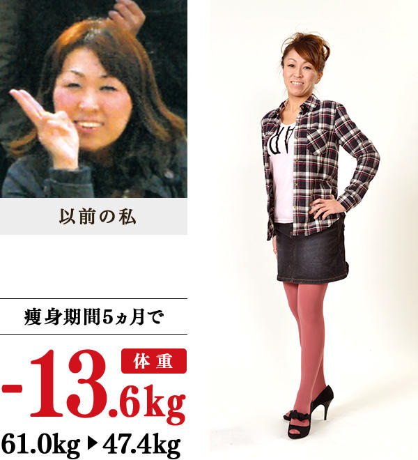 学生時代からポッチャリ体型で、万年ダイエットとリバウンドを繰り返していました。2011年に突然、父を亡くしたあと、過食症になり、お酒も飲みたい放題飲んでいたら、人生最大体重に…。初エステのイヴでは、冷えている体を温めることの必要性を実感。家では、朝食抜きをやめ、野菜をよく食べるようになり、お腹や太ももを中心にブラッシング体操も実行し、通学10回で5kg減、18回で10kg減!さらに痩せたら、コレステロール値が下がりました。お腹がへこみ、脚が細くなり、洋服はチュニックなどの13号から、ラインや脚が出る7号に変化。小顔にもなりました。