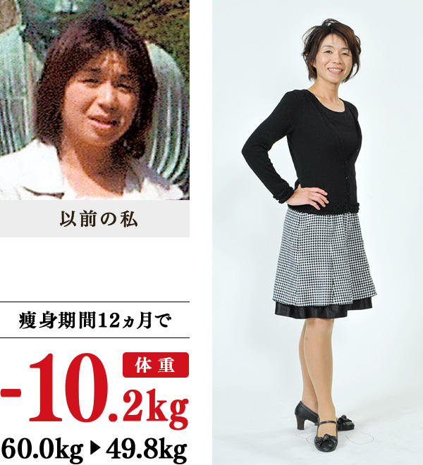子どもの頃からポッチャリ。成人後、複数のエステに通ったけれども、成果が出ず、一生エステへは行かないと決めていました。ところが、仕事で太っている人に生活指導をするときに、「自分がやれば」といわれてしまい、「健康やせ」の文字に惹かれ、イヴに入学。最初は半信半疑でしたが、1つひとつに根拠がある素晴らしい施術で、ヒップが上がる、むくみが取れるなどを実感し、最初の通学9回で5kg減!痩せたら、肩こりが治り、人前で脚を出せるようにもなりました。先生方が、私にあったいろいろな方法を考えてくださったので、大好きな甘い物の食べ方もコントロールできるようになりました。
