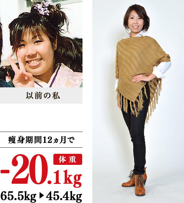 幼い頃から細かった経験はなく、とくに太ももは超ガチガチで、親には笑われ、人に「レスラー」といわれたことも…。食事を減らしたり、ジムへ行っても少し痩せるだけ。他のエステにも数軒行きましたが、むくみは取れても脂肪と体重は落ちませんでした。ところがイヴでは、通えば通うほど洋服がゆるくなり、そのサイズダウンのスピードに感激!悩みの太ももがプルンプルンになり、「スレンダー」「細い」「羨ましい」といわれる脚になりました。洋服は、7号やSのピタッとしたデザインが大好きに。とてもポジティブになり、子どもたちと元気に遊べる毎日です。
