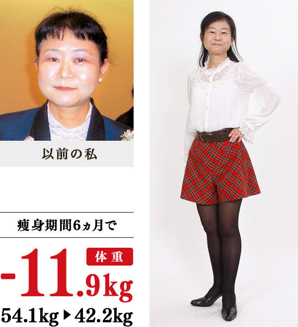 躁うつ病から不眠になり、食べると眠れたので、夜中に多食していたら、10kg太り、体脂肪率が40%に…。このままではいけないと思い、健康重視のイヴの痩身法にトライしました。最初は、体力的に大変でしたが、慣れてきたら体重が思っていたよりも順調に落ち、手技では体のコリがほぐれ、滞りが解消し、イヴの素晴らしさを実感!家では、夜食をやめ、3食バランスよく食べるように心がけ、半身浴やブラッシング体操、骨盤ストレッチも実行。痩せたら、疲れにくくなり、脂肪肝が治り、うつ症状も軽減!以前のアグレッシブさを取り戻しました。