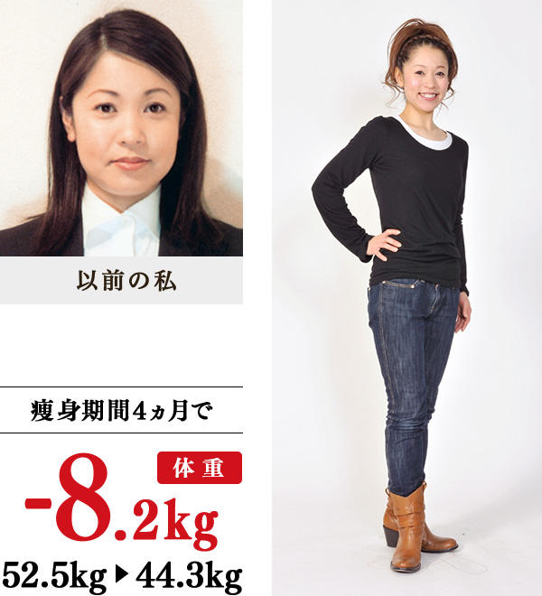 子どもの頃からポッチャリ系で、男子に「下半身デブ」とからかわれ、深く傷つき、親を恨んだことも…。イヴへの入学は、主人の「痩せたら絶対にキレイになるのになぁ」の言葉がきっかけでした。教室で、セルライトケアの施術を受けると、脂肪が本来のやわらかさになり、背中のつまりも取れ、感動!仕事帰りに通っていたので、ストレス発散にもなりました。家では、欠食をやめ、3食とるようにし、ブラッシング体操も実行。痩せたら、肩こり、息苦しさ、背中の吹き出物、首の痛みが解消し、毛穴も気にならなくなり、化粧のノリも良好に。土偶のようだった下半身が人生一美しいと思えるボディラインになりました。