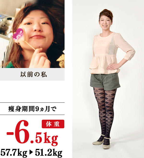 社会人になってから10kg以上太り、とくに下半身が悩みでダボッとしたパンツをよく履いていました。体脂肪率が30%を超えたとき、ヤバいと思い、初エステのイヴへ。オープンスペースの教室で、わかりやすい説明と指導をしていただけたことで、信頼して施術を受けることができました。セルライトケア施術では腰まわりや太ももがスッキリし、骨盤ケア手技では1回で体型が変化し、脚長に!洋服のサイズは13号から7号に変わり、脚を出すショートパンツやスカートにも挑戦できるようになりました。埋もれていた鎖骨が現れ、まんまる顔は小顔に。肌が乾燥しにくくなったことも嬉しいです。