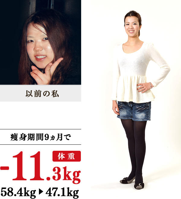 いつしか「ポッチャリ系」といわれるようになり、彼氏にお腹の肉をつままれる日々…。そんな自分を変えたくて、イヴに入学しました。施術の数が多く、体調にあわせてセレクトしていただけるのが魅力で、セルライトケアでは脚に念願のすき間ができ、筋肉運動施術ではお腹がサイズダウンし、塩の手技ではむくみスッキリ、肌もツルツルに!家では、豆腐、魚、肉などのたんぱく質を多くとるように心がけ、むくみ対策の半身浴やブラッシング体操も実行。痩せたら、むくみにくくなり、ニキビも減少。7号のショートパンツを履けるようになり、彼氏に「脚が別人みたい」といわれました。