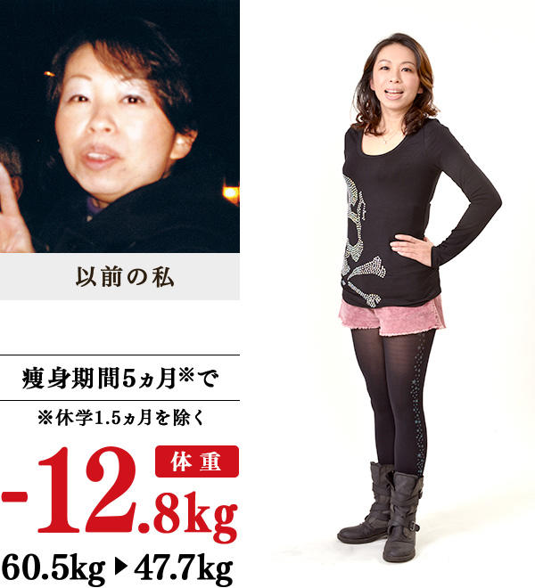 子どもには、毎日お腹や二の腕の肉をつままれ、「いつ痩せるの?」と、夫からは、「お尻が長いね」といわれていました。健康診断では、体重が7kg増えていて、脂肪肝の疑い…。ダイエットサプリを半年間飲んだり、他の痩身法も試したけれども変化がなく、イヴの門をたたきました。超音波や筋肉運動の施術を受けると、気持ちがよいうえに、ウエストの体脂肪率が5%も減少!家では、食事のときは噛む回数を増やし、半身浴で発汗。痩せたら洋服がMサイズになり、2012年の夏に買ったハーフパンツがすでにゆるゆるになり、ずっと憧れていたホットパンツも履けるようになりました。小顔になったことも嬉しいです。今年の健康診断が楽しみです。
