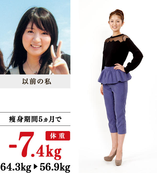 中学時代までやっていたバスケをやめてから、体重が増加…。痩せてお洒落を楽しみたいけれども、行動に移せなかったときに、イヴの存在を知りました。その日の体調にあわせて施術を変えていただけたため、無理なく通え、セルライトケアや骨盤ケアでは1回で効果を実感!セルライトケアを行った日はブラッシング体操をより念入りに行い、半身浴中にもみほぐしをというアドバイスも実行。ずっと気にしていた太ももにすき間ができ、洋服は太ももを隠す13号から9号のミニスカートやスキニーに変化。顔も以前よりスッキリし、ニキビや肌荒れもよくなりました。
