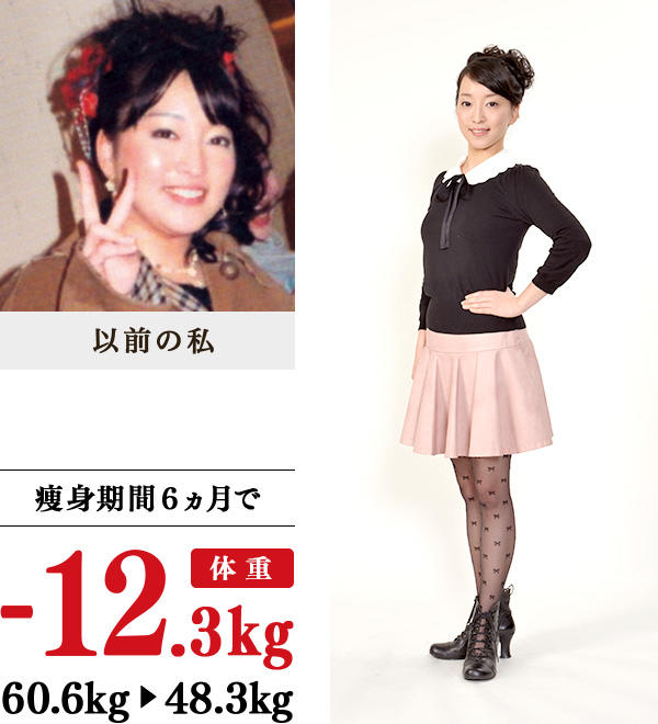 20歳まで50kg台前半だった体重が、年々増加。「就職活動のために痩せたい」といった妹とともに、私は、「どうせ痩せないだろう」と気乗りしないままイヴヘ。ところが、初日に体重や部位別サイズ、体脂肪率をはかり、その数値を見て愕然とし、本気で痩せようと思いました。イヴの痩身技術はしっかりしていて、先生方が毎回、汗びっしょりで施術してくださる姿に、感謝の気持ちでいっぱいになりました。家では、根菜、海藻を毎日食べ、半身浴やブラッシング体操も実行。楽しく通い、下腹部と腕はほっそり、背中や顔まわりはスッキリ!洋服はチュニック系の13号から、ミニや体にフィットする9号に変わりました。