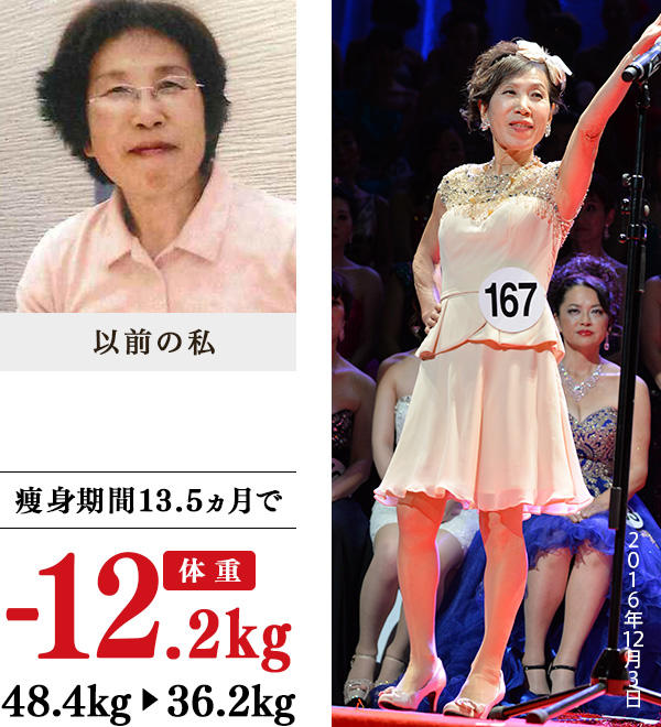 定年退職後、家で毎日ブラブラ過ごしていたら、お腹まわりが太くなり、ズボンが履けなくなったため、デパートに購入へ。そのとき、鏡に写ったのは、ちんころおばさんの姿…。お腹をなんとかしたいと思ったときにイヴを知り、体験へ行くと、体全体が温まり、極楽気分が味わえたため、入学しました。体型トラブルとともに、鬱々とした気持ちや緊張すると動悸が生じるなど、心のトラブルも抱えていたのですが、イヴに通い、先生たちにも出会ったことで、気持ちまで軽く!自宅にこもってばかりいた私が、毎回楽しく通学しました。夏には、なんと目標の2倍もの体重減量を達成。趣味の登山で南アルプスの北岳に登りました。イヴは私の楽園。最高です!