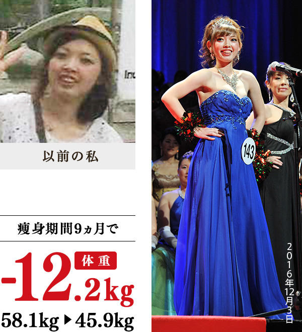 小さい頃からポッチャリで、痩せたことなどありません。この体型のまま一生生きていくのだろうと思っていたときに、イヴの広告を見つけ、軽い気持ちで通学を始めました。最初の頃は、温式痩身の温かい教室が息苦しく感じましたが、慣れると汗が出て、体調が良好に!太り方にあわせた痩身プログラムでどんどん体重が減ったことも感激でした。先生たちの指導で、食事面では朝食をしっかり食べ、温野菜や豆腐、しょうがを積極的にとり、ホームケアのブラッシング体操は脚のむくみ対策に入浴時に実行。49kgまで痩せたときに水着を着ることもできました。ウエストと下半身がスッキリ細くなったのは、先生たちが全力でケアしてくださったおかげです。