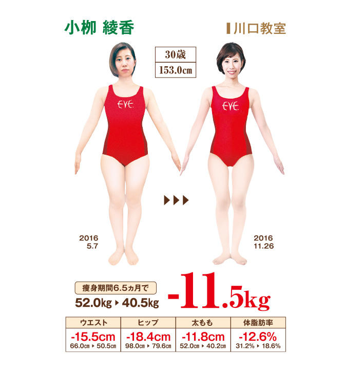退職を機に体重が増加。20代とは太り方が変わり、同じダイエットをしても思うように体重が減らず、逆に下腹部や太ももの肉が気になるように…。そんなとき、広告で見つけたイヴに、根本からダイエットを見直そうと、賭けてみました。温式痩身の温かい教室では、発汗量の多さに驚き、ここなら確実に痩せられると実感!家では、一番悩みだった食生活を、チーズ、パン、パスタを食べる時間や回数に気をつけ、逆に根菜、温野菜、ホットティーをよくとり、食べる順番も野菜、主食、ヨーグルト等に改善。5kg痩せた頃から、10代以降悩まされていた頑固な冷えが緩和されました。食事や生活のリズムが整い、体も楽になったイヴは、まさに私の駆け込み寺です。