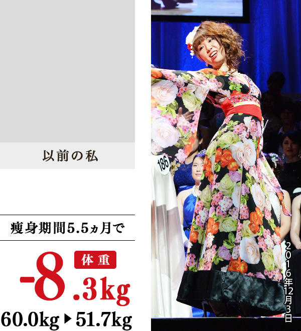 今までは、太ってもあまり脚は太くならなかったのに、気づいたら膝の上に肉がつき、ショックを受けました。2カ月後には友だちの結婚式があるのに、ドレスもキツイ…。すがる思いでイヴに駆け込みました。痩身技術は無理なく、苦しくもなく受けられ、自宅では入学前は毎日だったラーメンとアルコールの回数を減らし、代わりに温かいお茶やめかぶ、豆腐をとるなど、食生活を改善。ホームケアでは、シャワーではなく入浴で体を温めるようになり、イヴ伝授のブラッシング体操は入浴前に実行。2カ月で5kg痩せ、友だちの結婚式では、ドレスをサイズアップせずに着ることができました。膝上の肉もいつの間にかなくなり、自慢の脚のラインが蘇りました。